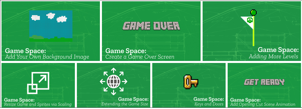 - Extending the Game Size: if you want your game to scroll as your player moves, this is how!\