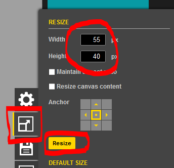 Create a background in piskel. Create a Sprite. Then Resize to 55 pixels wide to 40 pixels high.